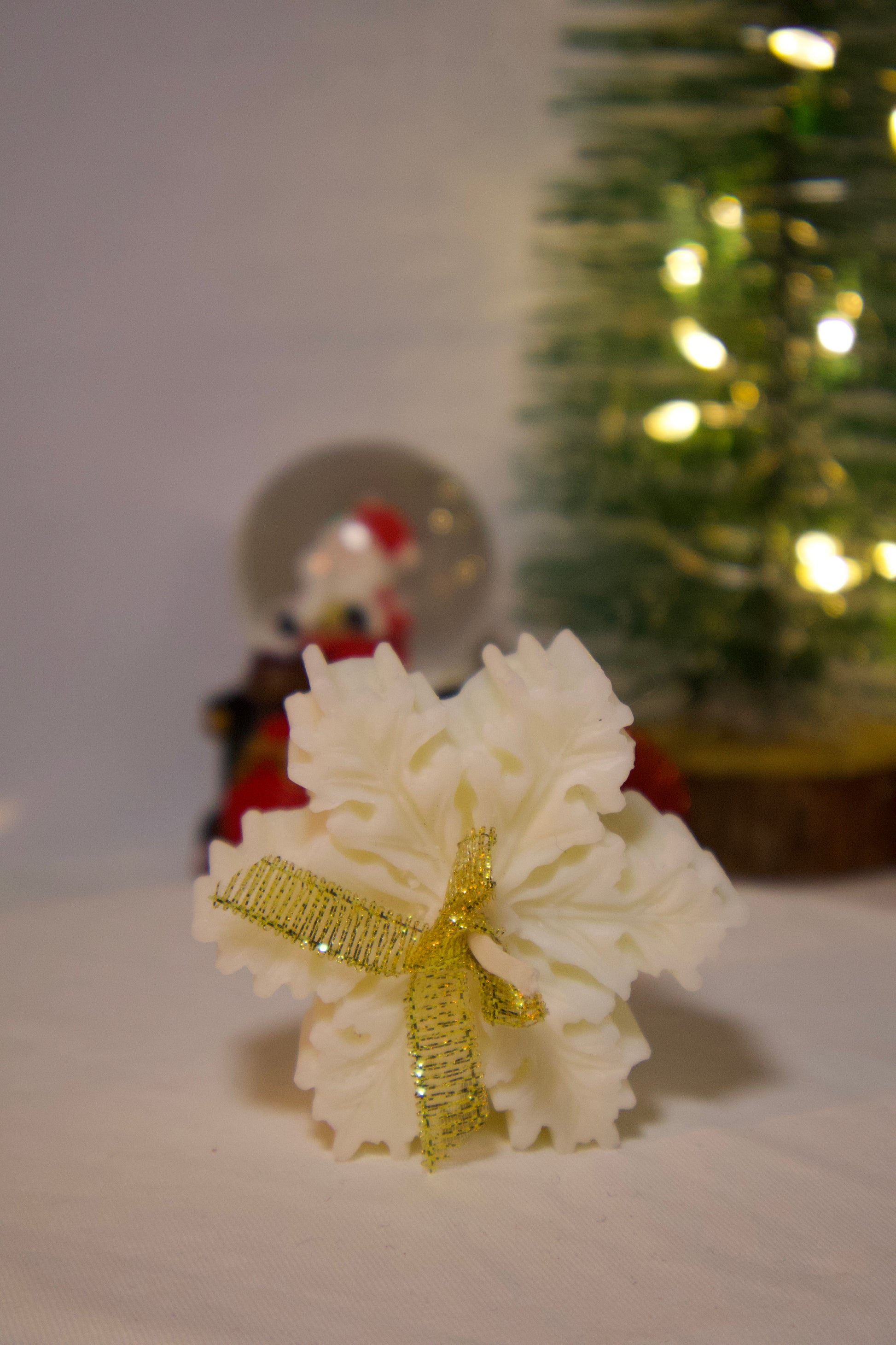 Crea un ambiente ideal para estas navidades con nuestra vela decorativa con forma de copo de nieve. Elaborados a mano, con ceras vegetales le dará a tu hogar un toque acogedor.