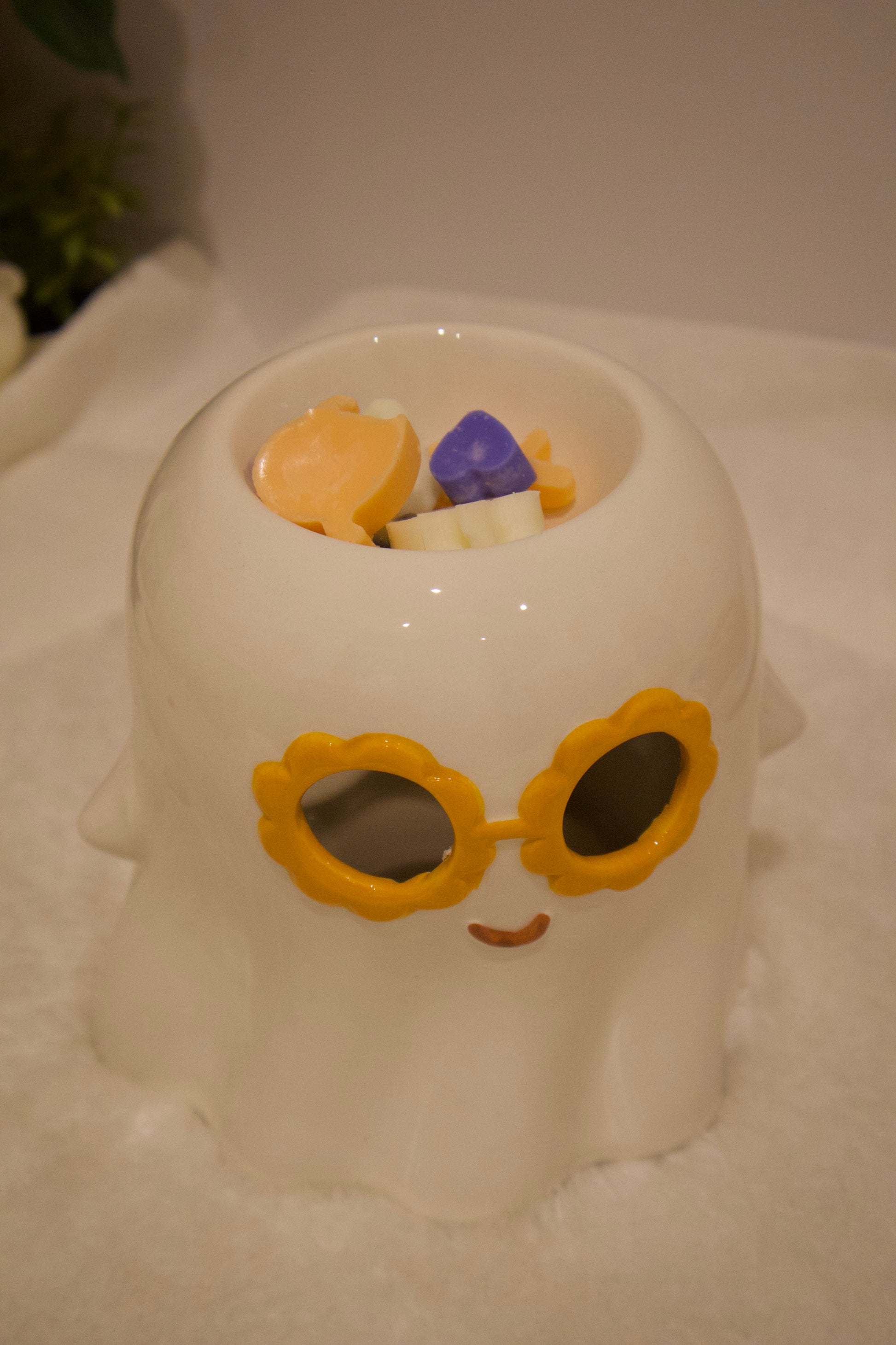 Añade un toque de encanto y calidez a tus momentos con nuestro quemador aromático en forma de fantasma retro. Su diseño único con gafas estilo ochentero combina estética y funcionalidad, creando una experiencia sensorial perfecta para acompañar tus velas y wax melts Ravello.